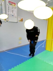 意識するため、膝にカードやマーカーをはさんで縄を跳びます🐇
