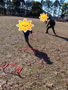 マラソンしたりハードルしたり、寒いのもどこかへ行ってしまうほど元気な子どもたちでした。