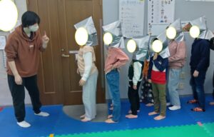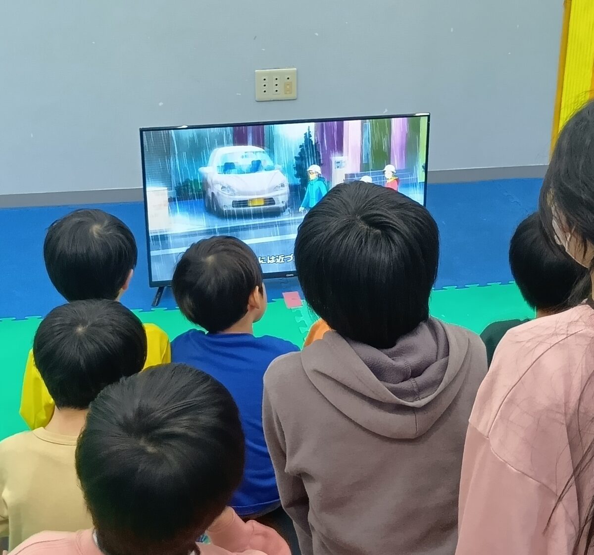 防災頭巾を被って静かに先生の後ろをついてきてくれました。