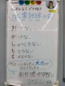 こどもプラスの水害時の避難場所は「南行徳中学校」です。